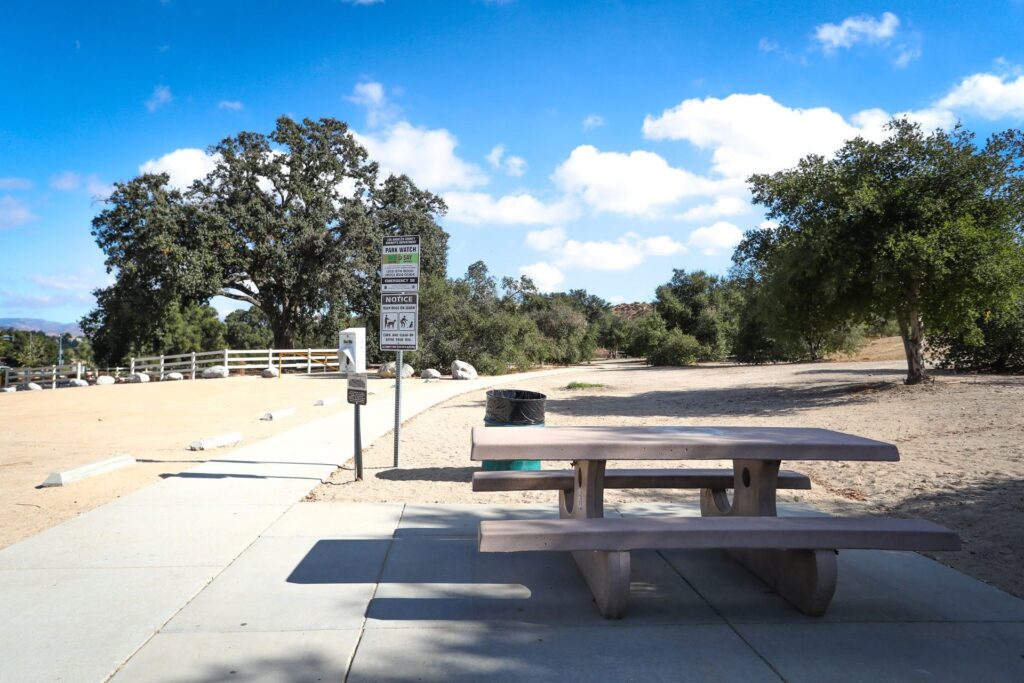 Pico Canyon Park is a 21-acre park offering paths, picnic tables & a huge, transplanted oak tree known as “Old Glory.”