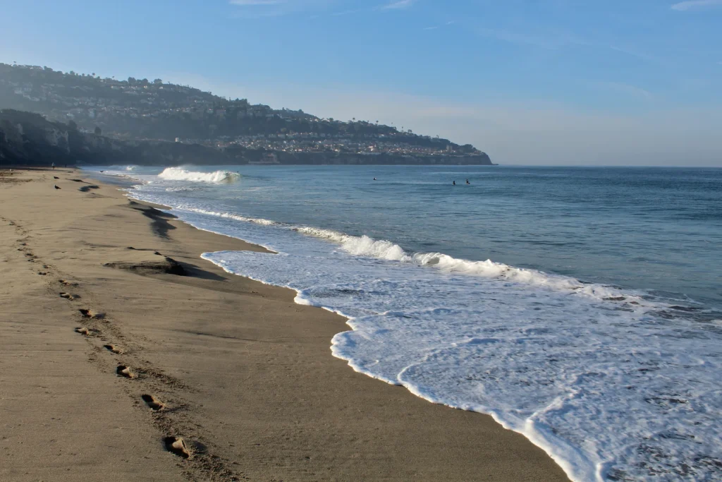 This beautiful, soft sand beach has 40 acres of beach and is at the foot of cliffs which extend to the Palos Verdes Peninsula.